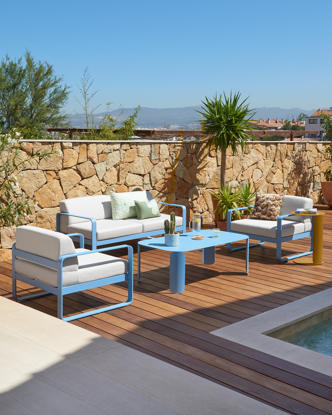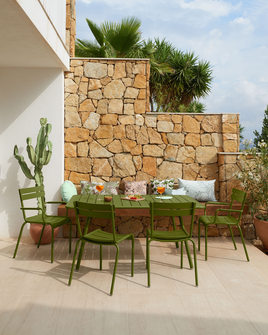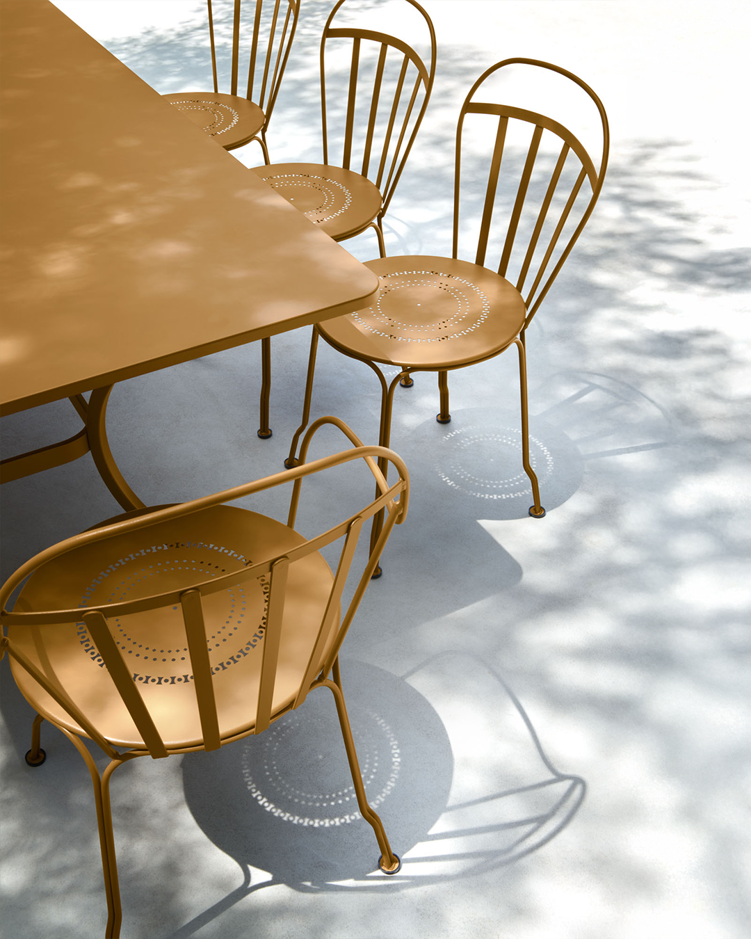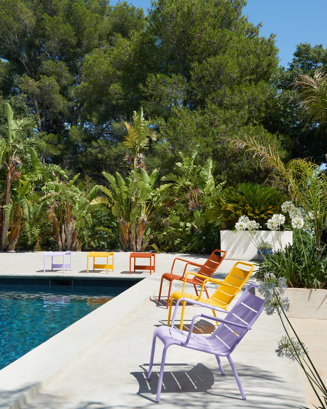Fermob pays special attention to the materials they use, sourcing only the highest quality steel and aluminium and high tenacity outdoor fabrics to ensure you will enjoy your furniture and accessories for many years to come. This is what distinguishes Fermob from many other outdoor furniture brands — their products are specially developed to withstand the natural elements over a long period of time. Most of the Fermob furniture collection is available in a palette of 25 colours allows customers to create their own unique look. Have fun mixing or matching colours or going for an overall monochrome look to suit your ideal aesthetic.