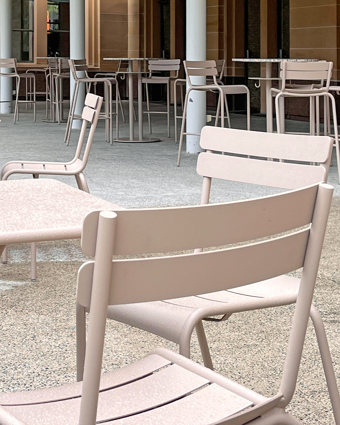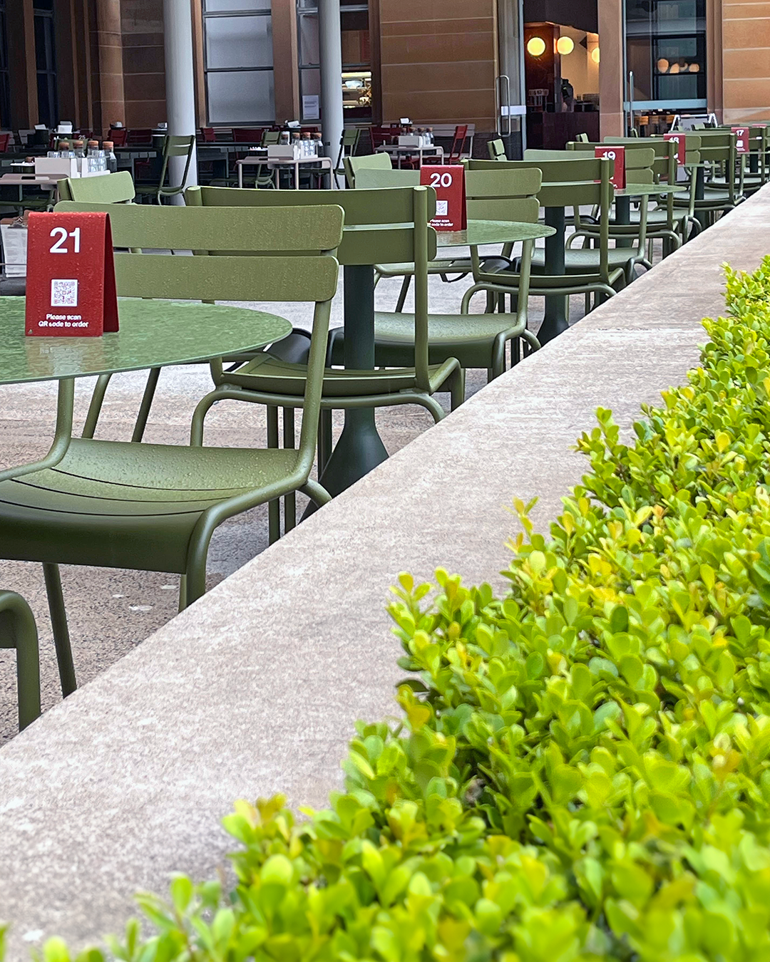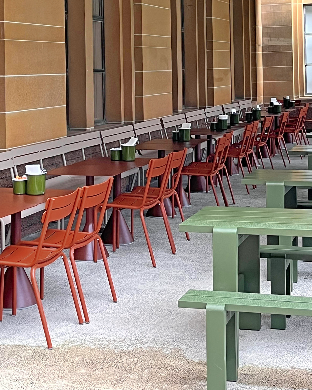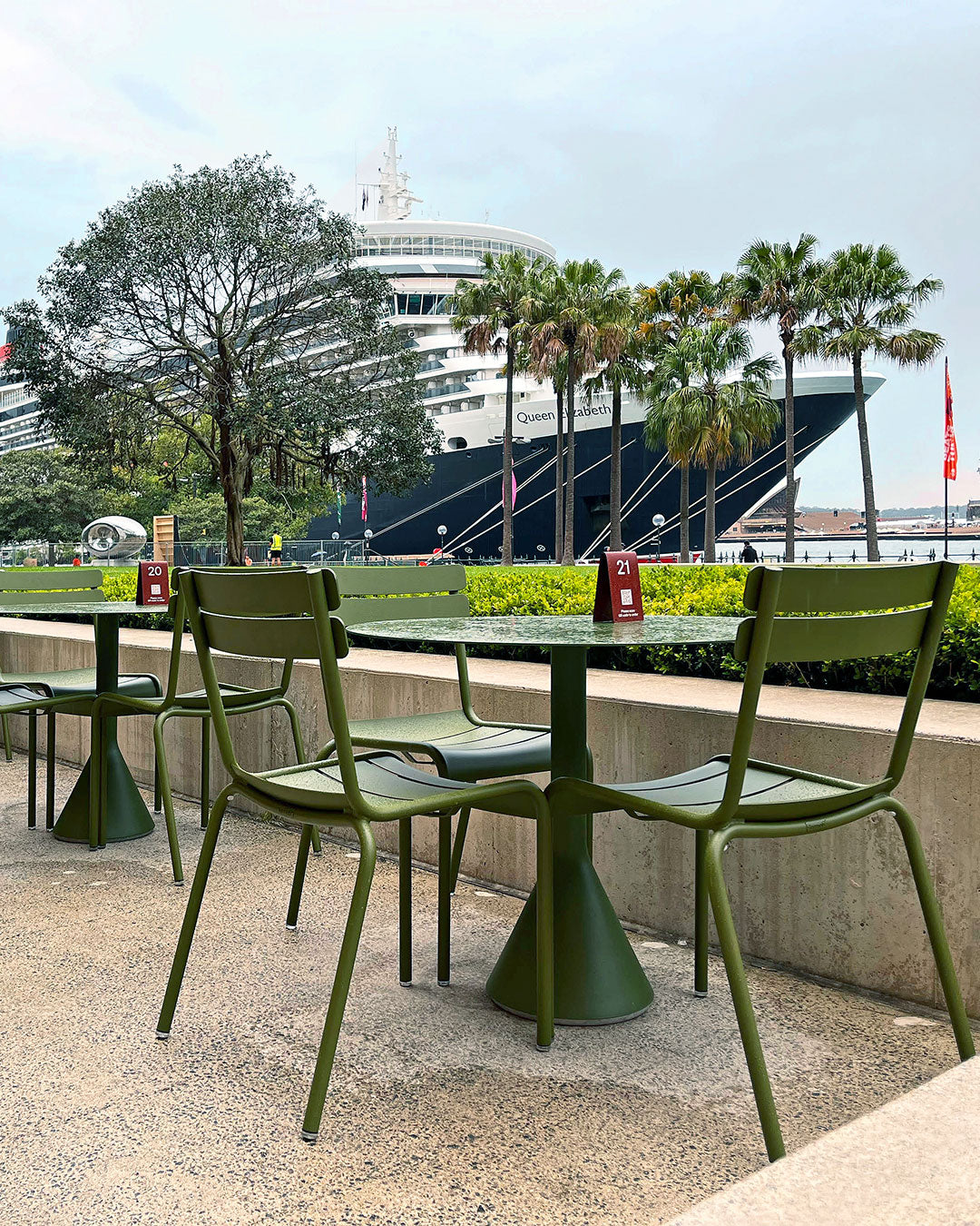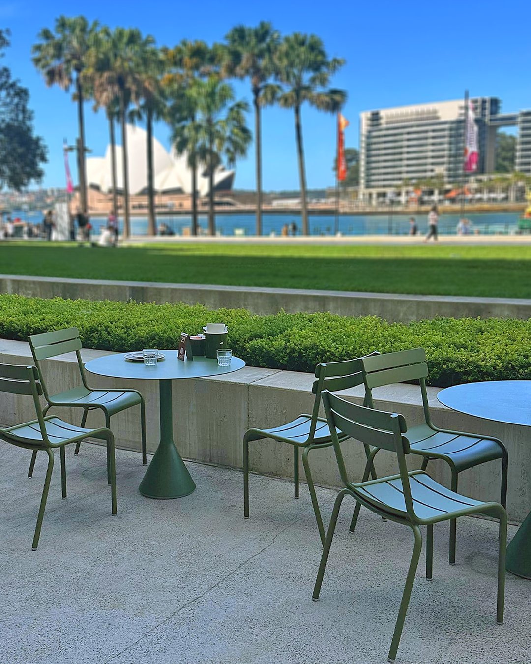 The MCA Café at Tallawoladah, with its breathtaking views of Sydney Harbour, now features Fermob’s Luxembourg tables and chairs in stunning Red Ochre and the fresh new Pesto colour. These iconic French designs bring a vibrant yet sophisticated touch to the café's casual all-day dining experience. Combining lightweight durability with timeless style, the Luxembourg collection perfectly complements the artistic atmosphere of the Museum of Contemporary Art.