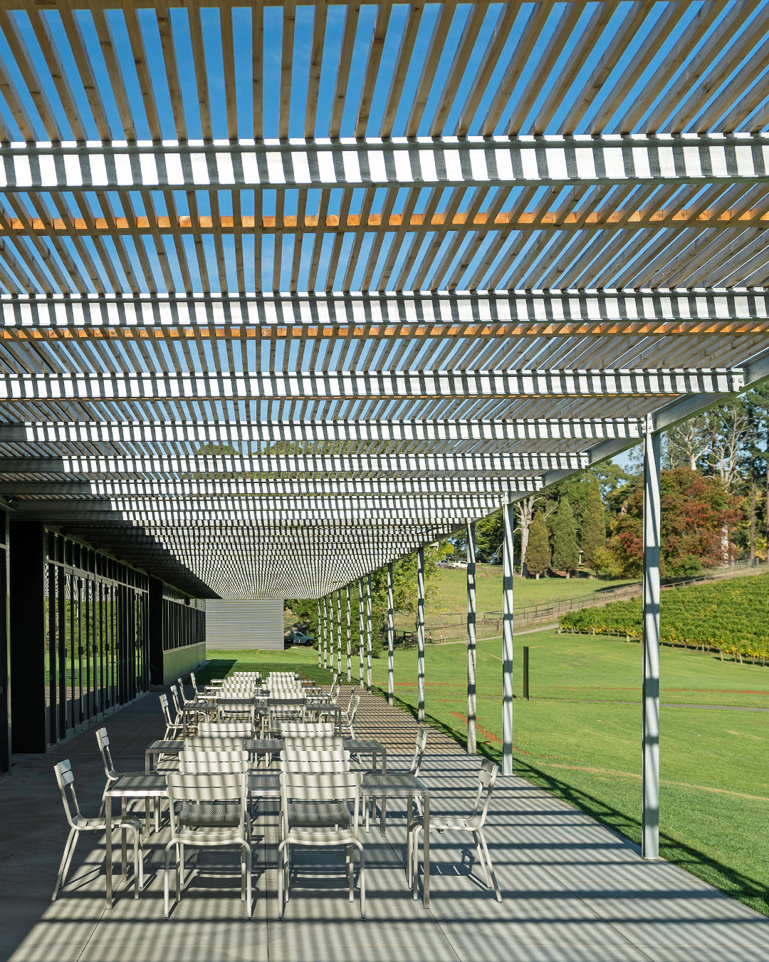 Relax and unwind in style with Fermob’s Luxembourg chairs in elegant Clay Grey, thoughtfully placed to tie in with the stunning Balhannah Vineyard landscape. These iconic French-designed chairs offer both comfort and sophistication, blending effortlessly with the natural surroundings. Perfect for enjoying the views, the Luxembourg collection’s sleek lines and timeless appeal create a seamless outdoor seating experience that enhances the beauty of the vineyard setting.